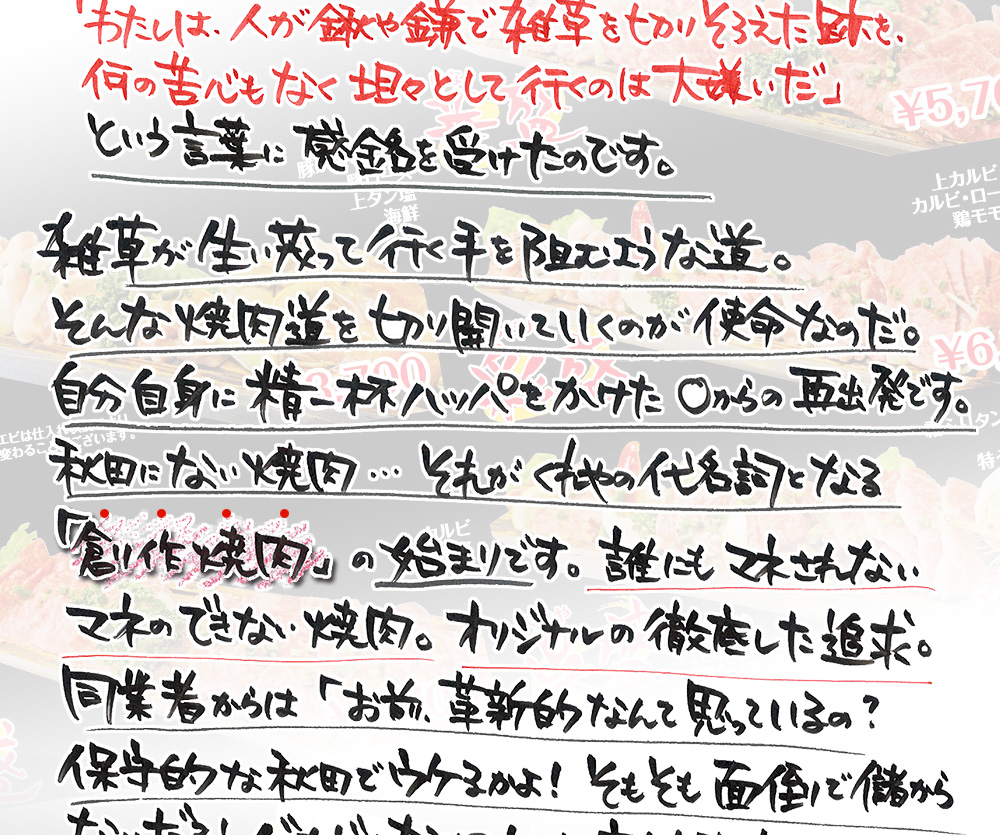 焼肉求道者として20年。焼肉のことなら秋田で右に出る者なし!秋田市外旭川八柳・炭火創作焼肉くれや